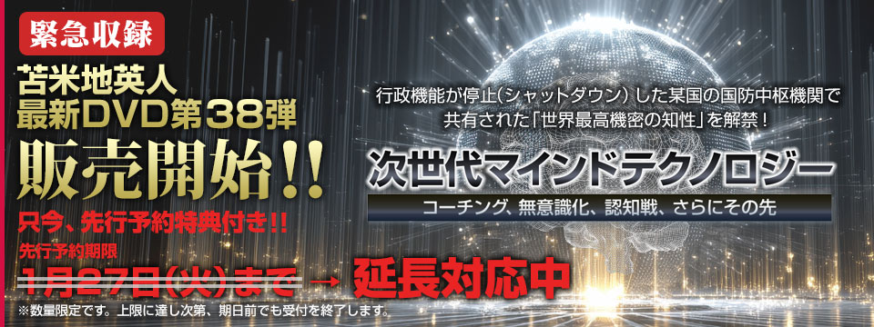 最新DVD「次世代マインドテクノロジー 〜 コーチング、無意識化、認知戦、さらにその先」先行予約発売開始しました。